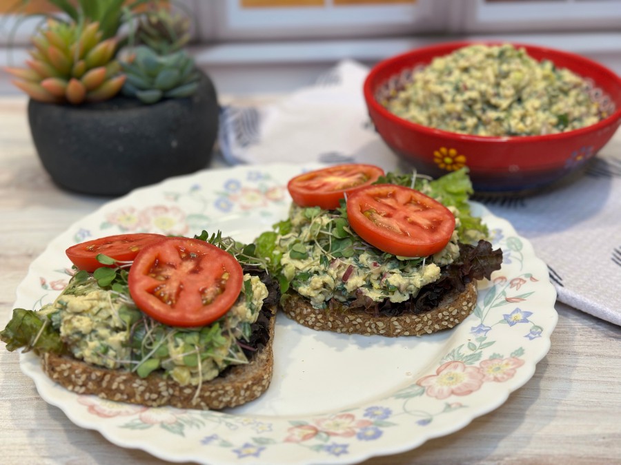 DESCRIPTION: This plant-based “egg” salad is creamy, savory, and perfect for sandwiches, wraps, or on a bed of greens. It’s made oil-free and uses wholesome