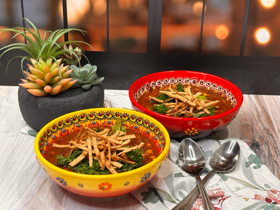 DESCRIPTION: This instant-pot Tex-Mex “Taco” soup is a bold, comforting, oil free vegan meal made with beans, fire roasted tomatoes, corn, salsa and smoky spices.